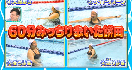 25年10月1日放送の「それって実際どうなの会」は陸を普通に歩くのと水中ウォーキングでどちらが痩せるのか?そのダイエット効果を餅田コシヒカリ、大橋ミチ子が検証という事で結果をまとめてご紹介。