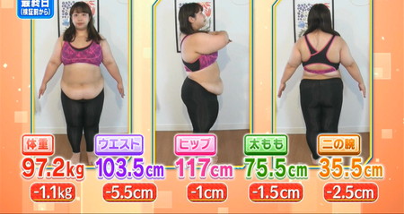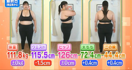 - ヒップ 116.5cm (前日比マイナス1.5cm)