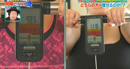 多少の差が付いて水中ウォーキングの方がダイエット効果がやや優勢という初日を終えての結果。