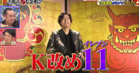 ロバート山本博(通称:H)に顔がそっくりということでKからHへの改名をかけて挑戦した前回。まさかの自己ベストを下回る5レンチャンで挑戦を終えたということでHになれない「11(イレブン)」と命名されたKが今回再登場。