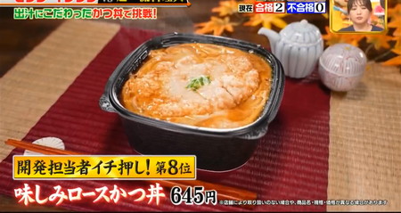 出汁の下支えがないかつ丼もある中で、こちらの商品は出汁があって、そこにかえしの旨味が乗って卵のふんわり感があるというかつ丼になっており、やや味が濃い点が気になるものの個人の好みの範疇なのでOKという評価。何より645円でこれだけのボリューム感があるコスパの良さは特筆すべき点との事。