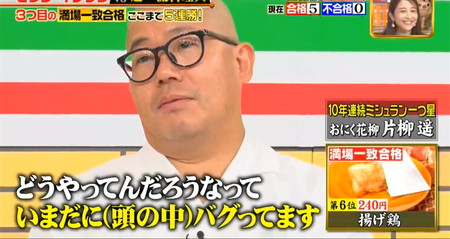 他の審査員からも揚げ鶏の商品名そのままで、シンプルながら塩が勝ち過ぎていない点が秀逸であくまで鶏の美味しさを引き立たせる塩の使い方や、肉汁がとてもジューシーで綺麗な鶏の脂が感じられるので「どうやっているのか頭の中がバグる」と大絶賛。
