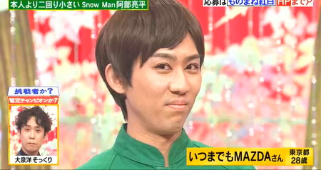 本人より二回り小さいSnow Man阿部亮平ものまね紅白2025秋の顔だけそっくりさん出演者 阿部亮平