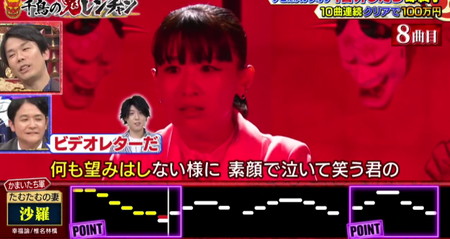25年10月19日放送の「千鳥の鬼レンチャン」では沙羅が夫たむたむとの夫婦ゲンカ、カトリーナ陽子との浮気疑惑、ビデオレターと内容盛り沢山の中でノーマルに再挑戦という事で曲一覧や結果をまとめてご紹介。