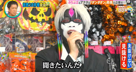 ドン・キホーテの店頭を使った路上パフォーマンスでは集まったギャラリーの正解者多数でかなり分かりやすかった様子。口元に特徴があるので目の周りをマスクで覆っただけでは隠しきれなかった様子。