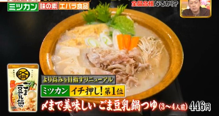 1位 〆まで美味しい ごま豆乳鍋つゆ (満場一致合格)ジョブチューンのミツカン鍋つゆ1位 ごま豆乳鍋