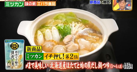 2位 〆まで美味しい 北海道産ほたてと蛤の貝だし鍋つゆ (合格)ジョブチューンのミツカン鍋つゆ2位 ほたてと蛤の貝だし