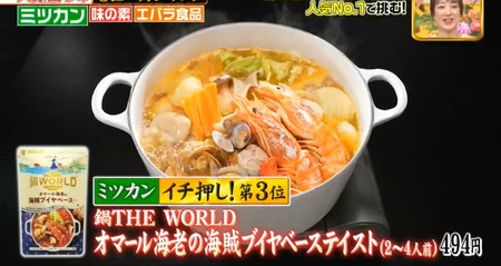 3位 オマール海老の海賊ブイヤベーステイスト (合格)ジョブチューンのミツカン鍋つゆ3位 ブイヤベース