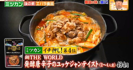 4位 発酵唐辛子のユッケジャンテイスト (満場一致合格)ジョブチューンのミツカン鍋つゆ4位 ユッケジャン