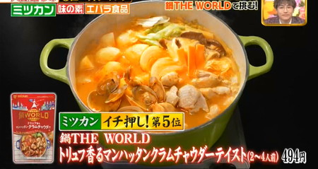 5位 トリュフ香るマンハッタンクラムチャウダーテイスト (合格)ジョブチューンのミツカン鍋つゆ5位 クラムチャウダー