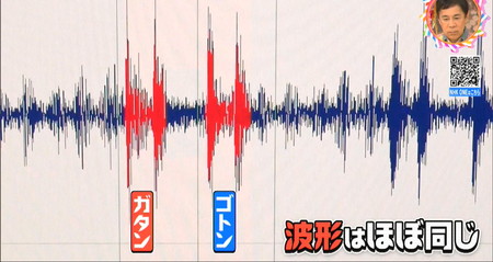 また、試しにガタンゴトンの音を機械的に入れ替えてゴトンガタンに聞こえるか実験してみると、入れ替えてみてもガタンゴトンに聞こえる不思議。