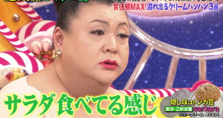マツコ「うわぁこれもうマヨネーズほぼ!褒め言葉ですからね。」「ちょっと爽やかな感じするね。これはもう背徳感ないわよ。サラダ食べてる感じ。」マツコの知らない世界のシュークリーム サラダ感覚の爽やかさ?