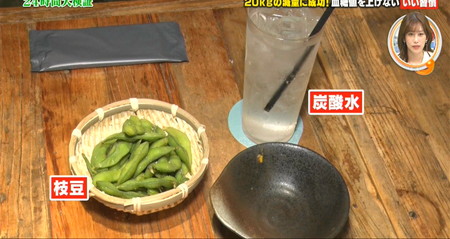 - メインの食事の前にたんぱく質豊富な枝豆と炭酸水