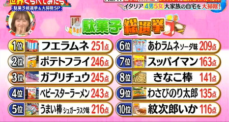 世界くらべてみたら 駄菓子総選挙ランキング3位ガブリチュウ、2位ポテトフライで1位は?