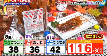 10位最下位 紋次郎いか(一十珍海堂)世界くらべてみたら 駄菓子総選挙ランキング最下位は紋次郎いか