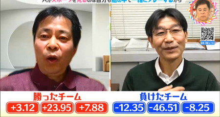 これについてテストステロンについて詳しい埼玉大学の塚原伸治教授は、試合観戦直後は勝者側も敗者側もどちらも興奮状態にあるので、全員テストステロン値が上がっているという予想だったのが、勝者側だけ上がって敗者側は下がるという好対照だったのはかなり予想外の結果だったようで、選手と同じ気持ちになっている可能性が高いという結論。