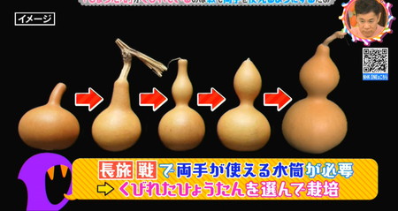 ひょうたんは約半年で実がなる事から栽培が簡単で、高温で乾燥した地域では放っておくだけで皮が硬くなって中は乾いてすぐに空洞に出来る事から扱いやすい器としての利便性が高く、1万年以上前から人類に使われているというとても有益な植物。