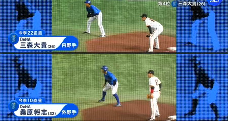 土のアンツーカーを出るかどうかはリードの大きさを測る一つの物差しですが、チームメイトの桑原将志と比べても一目瞭然。すぽると100人分の1位 三森大貴のリードの大きさ