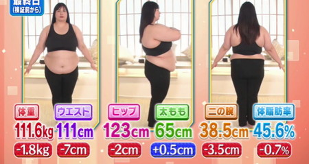 - 体脂肪率 57.1% (-1.5%)