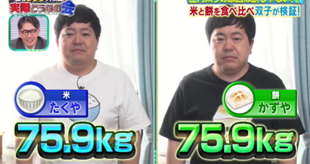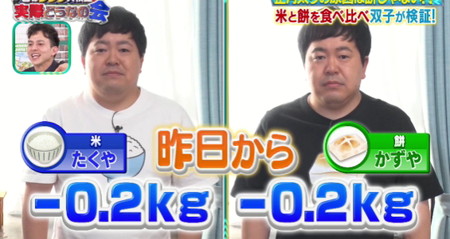グラム数を揃えているのに餅は多く食べているように感じるという感想を語る餅かずやですが、その感覚がどの程度体重に反映されるのか?注目。