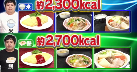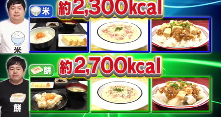 この結果を受けて米を支持していた内野先生は「正月太りは自分自身の問題で餅のせいじゃない」と餅を見直す意見で終了。
