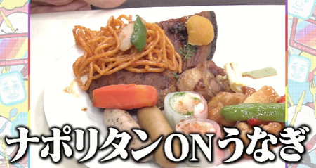 徐々に皿が埋まって来たところでナポリタンをうなぎの上にかけてしまってややビジュアル的にマイナス。