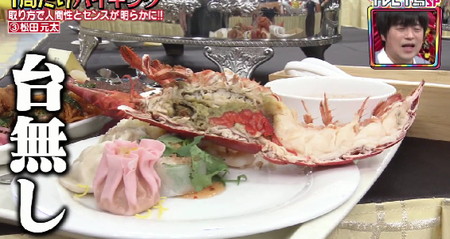 歴代バイキングでは菅田将暉とぼる塾田辺しか取っていない生春巻き、酢豚、ハンバーグ、ソーセージと皿に盛ると、天ぷら揚げたてコーナーで椎茸&ナスのオーダーでエビをスルー。