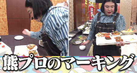 バイキングが大好きで好きな食べ物は「洋食」と宣言していた熊元プロレスですが、スタートしてすぐに現れる揚げ物ゾーンの手羽先、串揚げのエビに早速引っかかってつくね串と一緒に全て2本ずつ。