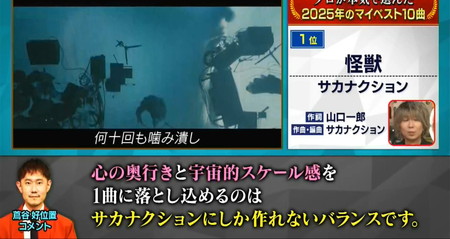 「2025年最大の衝撃。大森元貴のボーカルは異次元でフルアクセルのシャウトを完全にコントロールし、衝動と技術を信じられないレベルで同時に成立させています。少数編成の弦アレンジは美しさと混沌、生々しい質感を残し原曲に新たな解像度をもたらしています。」