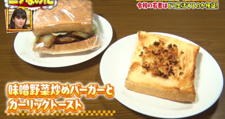 お昼は味噌野菜炒めバーガーとガーリックトーストで簡単に済ませて、夕食を豪華にするためにセーブ。