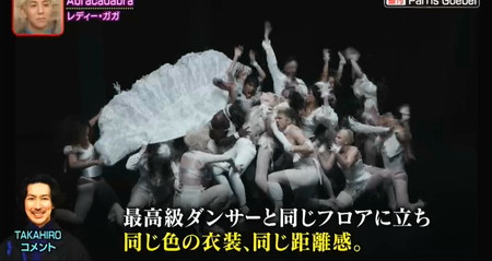 「劇中、ほとんどガガは特別な場所にいない。最高級ダンサーと同じフロアに立ち、同じ色の衣装、同じ距離感。カメラワークや映像編集でもっとスピーディーに見せられる現代技術の最先端にいながら、あえて劇場的に己を武器に真っ向勝負で圧倒する凄まじさ。現代に対する反抗、レジスタンスにも感じます。」