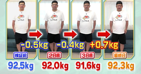 最近のダイエット検証企画ではこの辺でリバウンドするパターンが増えてきていましたが、順調に体重が減って良い傾向。