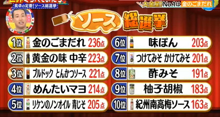 世界くらべてみたら ソース総選挙ランキング3位はとんかつソース、2位は黄金の味で1位は?