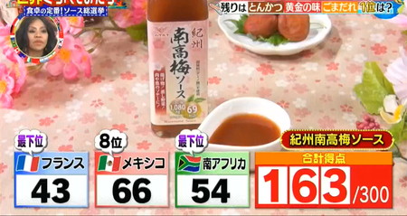 10位最下位 ハグルマ 紀州南高梅ソース世界くらべてみたら ソース総選挙ランキング最下位は梅ソース
