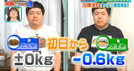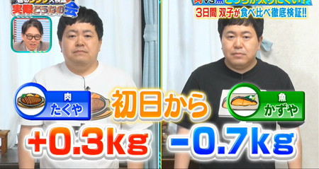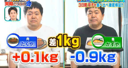 それって実際どうなの会 肉vs魚のダイエット結果はザ・たっち体重が史上最高の1kg差に