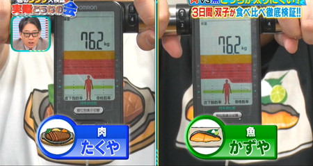 この結果を受けて嬉しい魚派の齋藤真理子先生に対しては肉派の明星智洋先生は「3日間やって体重がほぼ横ばいと考えると肉も大健闘」と一定の評価。