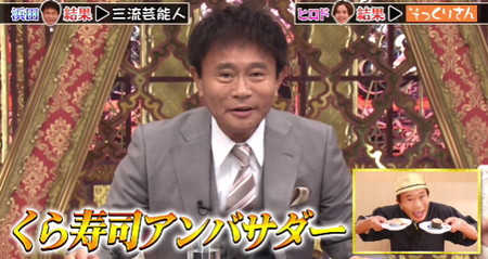 Bを絶対ありえへんと予想した浜ちゃんはそこまでは良かったものの正解を逃す事に。ただし、くら寿司アンバサダーの浜ちゃんなのである意味一番正解を選んだとも言える結果に。格付けチェック2026春 くら寿司アンバサダーの浜ちゃん