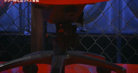 慌てて周囲を見渡す出演者たちと椅子の脚部に仕込まれた怪しい赤い光。