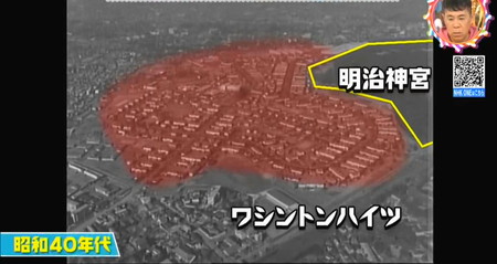 そして時代は一気に進んで1946年の第二次世界大戦直後にはこのエリア(現在の代々木公園周辺)にワシントンハイツと呼ばれるアメリカ人兵士が住む村が作られましたが、その広さは現在の代々木公園、国立代々木競技場、NHKにまで及ぶかなり広大な面積。